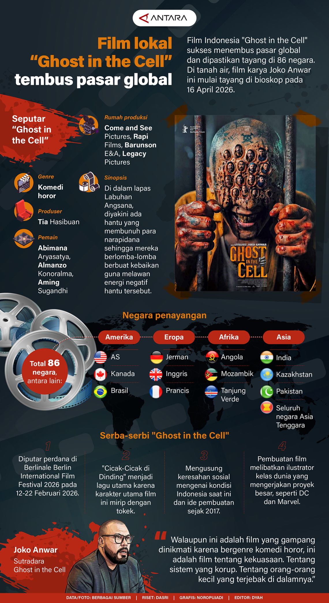 Film Indonesia "Ghost in the Cell" sukses menembus pasar global dan dipastikan tayang di 86 negara. Di tanah air, film karya Joko Anwar ini mulai tayang di bioskop pada 16 April 2026.