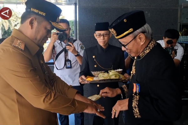 ANTARA - Prosesi adat Kutai, Tepung Tawar, menyambut hari pertama Gubernur Kalimantan Timur Rudy Mas'ud dan Wakil Gubernur Seno Aji bekerja di Kantor Gubernur Kaltim, Senin (3/3). Rudy Mas'ud memulai hari perdana tugasnya sebagai gubernur dengan langsung memimpin rapat jajaran organisasi perangkat daerah Kaltim. (Hanifan Ma'ruf/Sandy Arizona/Gracia Simanjuntak)