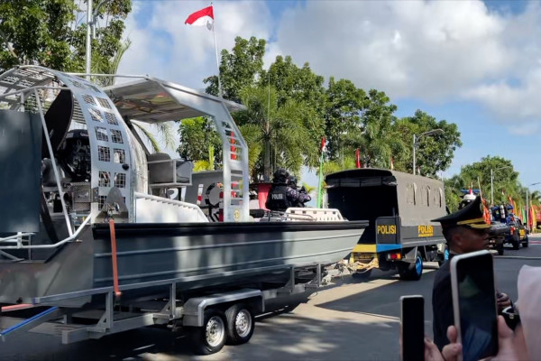 ANTARA - Kepolisian Perairan dan Udara (Polairud) Polda Kepulauan Riau menerima satu unit kapal patroli baru dalam rangkaian HUT ke-79 Bhayangkara, di Batam, Kepulauan Riau, Selasa (1/7). Kapolda Kepri Irjen Pol. Asep Safrudin mengatakan, kapal bertipe C2 yang dinamakan KP Arung Seligi itu digunakan untuk patroli dan kegiatan kemanusiaan di wilayah hukum Provinsi Kepri. (Angiela Chantiequ/Andi Bagasela/Gracia Simanjuntak)