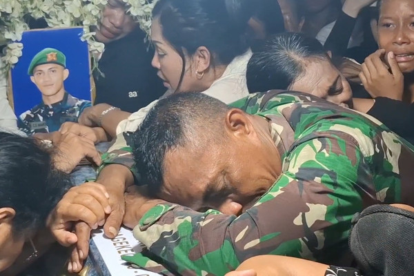 ANTARA - Prada Lucky Chepril Saputra Namo yang meninggal pada Rabu (6/8) di Rumah Sakit Umum Daerah (RSUD) Kabupaten Nagekeo, Provinsi NTT dimakamkan pada Sabtu (9/8) di Kota Kupang. Pemakaman almarhum yang diduga dianiaya oleh seniornya ini dilakukan secara militer. (Kornelis Kaha/Soni Namura/Ardi Irawan)