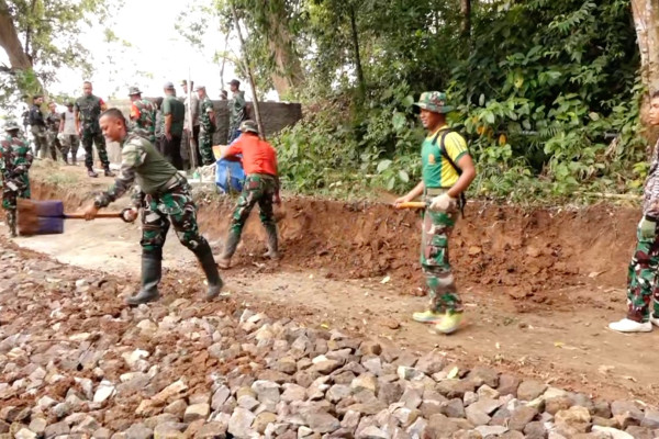 ANTARA - Program TNI Manunggal Membangun Desa (TMMD) ke-125 Kodim 0803 Madiun digelar di Desa Ngranget, Kecamatan Dagangan, Kabupaten Madiun. Di sini program TMMD berfokus pada pembangunan jalan dan aliran air bersih untuk menghidupkan perekonomian desa tersebut. (Rindhu Dwi Kartiko/Soni Namura/Ardi Irawan)