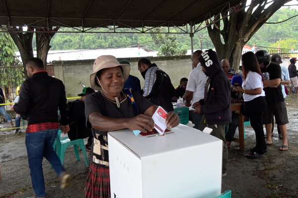 ANTARA - Komisi Pemilihan Umum (KPU) Kota Jayapura, Papua menggelar Pemungutan Suara Ulang (PSU) kembali untuk Pemilihan Gubernur dan Wakil Gubernur Papua di tiga Tempat Pemungutan Suara (TPS) di Distrik Jayapura Selatan pada Jumat (15/8). Ketua KPU Provinsi Papua Diana Dorthea Simbiak mengatakan pelaksanaan PSU ini atas rekomendasi dari Bawaslu setempat, karena adanya temuan pelanggaran saat pelaksanaan PSU 6 Agustus lalu. (Laksa Mahendra/Denno Ramdha Asmara/Ludmila Yusufin Diah Nastiti)