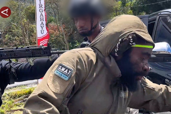ANTARA - Satgas Ops Damai Cartenz berhasil menangkap seorang anggota Kelompok Kriminal Bersenjata (KKB) bernama Konara Enumbi di sebuah rumah atau honai di Kampung Usir Depan, Kabupaten Puncak Jaya, Papua Tengah, Jumat (15/8). Kasatgas Humas Damai Cartenz Kombes Pol Yusuf Sutejo mengatakan, pelaku yang terlibat aksi penembakan dan pembunuhan Brigpol Ronald Enok itu hingga kini masih diperiksa di Polres Puncak Jaya. (Laksa Mahendra/Rayyan/Ahmad Faishal Adnan)