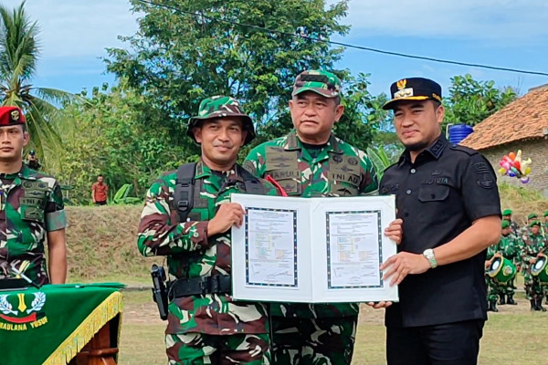 ANTARA - Kepala Staf Angkatan Darat (KSAD) Jenderal TNI Maruli Simanjuntak, Kamis (21/8), menutup kegiatan TMMD ke-125 yang digelar di Lingkungan Parigi, Kelurahan Cikerai, Kecamatan Cibeber, Kota Cilegon, Banten. Pemerataan infrastruktur mulai dari pembangunan jalan sepanjang 1 km yang membuka akses jalan pertanian Parigi-Pakis Haji, 2 unit rumah tidak layak huni, 4 unit jambanisasi, hingga pembangunan sumur bor di 5 titik di Kota Cilegon berhasil diselesaikan. (Susmiatun Hayati/Fahrul Marwansyah/Gracia Simanjuntak)