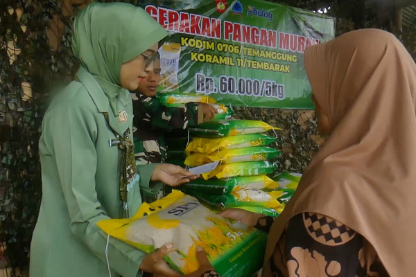 ANTARA - Komando Distrik Militer (Kodim) 0706 Temanggung, Jawa Tengah, menyediakan sembako murah ke pelosok desa, Kamis (21/8). Sembako ini merupakan upaya memenuhi kebutuhan masyarakat, sekaligus juga menjaga stabilitas harga kebutuhan pokok yang mulai merangkak naik. (Firman Eko Handy/Andi Bagasela/Roy Rosa Bachtiar)