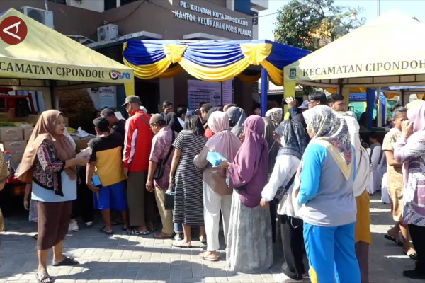 ANTARA - Pemerintah Kota Tangerang melalui Dinas Ketahanan Pangan memastikan program gampang sembako kembali dilaksanakan secara serentak di 13 kecamatan, Sabtu (30/8). Kepala Dinas Ketahanan Pangan Kota Tangerang, Muhdorun menyebutkan ada sebanyak 250 paket sembako yang di setiap kecamatan dengan harga Rp. 90 ribu per paketnya. (Agung Andhika Indrawan/Satrio Giri Marwanto/Hilary Pasulu)