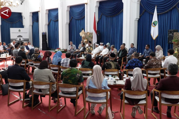 ANTARA - Pasca demo anarkis yang melibatkan mahasiswa di Bandung, Pemerintah Provinsi Jawa Barat bersama puluhan rektor Perguruan Tinggi menggelar pertemuan di Aula Barat Gedung Sate, Selasa (2/9). Pertemuan ini menjadi langkah awal meredakan ketegangan dengan membuka ruang dialog antara pemerintah, perguruan tinggi, dan mahasiswa. (Dian Hardiana/Sandy Arizona/Nanien Yuniar)