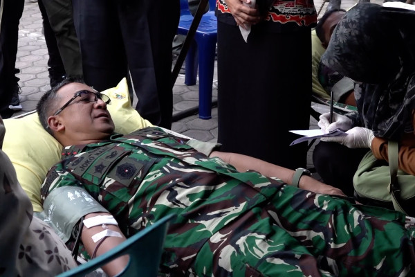 ANTARA - Kodam Iskandar Muda Aceh menggelar bakti sosial donor darah, serta menyediakan pemeriksaan kesehatan gratis hingga pengobatan akupuntur bagi masyarakat, Jumat (12/9). Pangdam IM Mayjen TNI Joko Hadi Susilo mengatakan kegiatan tersebut juga merupakan upaya mempererat hubungan TNI dengan masyarakat demi menjaga situasi Aceh tetap aman dan kondusif. (Aprizal Rachmad/Andi Bagasela/Gracia Simanjuntak)