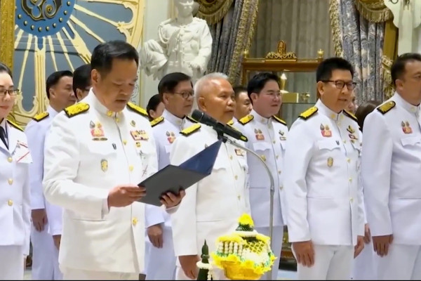 ANTARA - Thailand melantik pemerintahan koalisi baru di bawah kepemimpinan PM Anutin Charnvirakul dengan 36 anggota kabinet. Upacara pengucapan sumpah dilakukan di Istana Dusit, Bangkok, dipimpin Raja Maha Vajiralongkorn. Anutin, 59 tahun, merupakan pemimpin Partai Bhumjaithai yang mendapat dukungan parlemen dan persetujuan koalisi untuk menjadi Perdana Menteri ke-32 Thailand. (XINHUA/Rinto A Navis/Soni Namura/Gracia Simanjuntak)