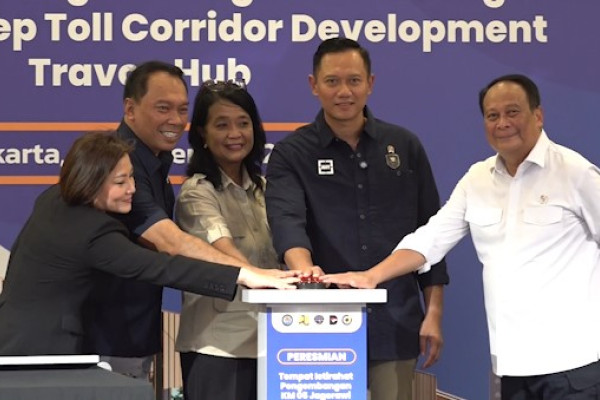 ANTARA - Menko Infrastruktur dan Pembangunan Kewilayahan Agus Harimurti Yudhoyono meresmikan rest area Travoy Hub di Jakarta, Kamis (25/9). Travoy Hub dibangun sebagai kawasan berorientasi transit (TOD) yang menghubungkan Stasiun LRT Taman Mini, area KM 05 Tol Jagorawi, dan fasilitas publik lainnya. (Irfan Hardiansyah/Rizky Bagus Dhermawan/Suwanti)