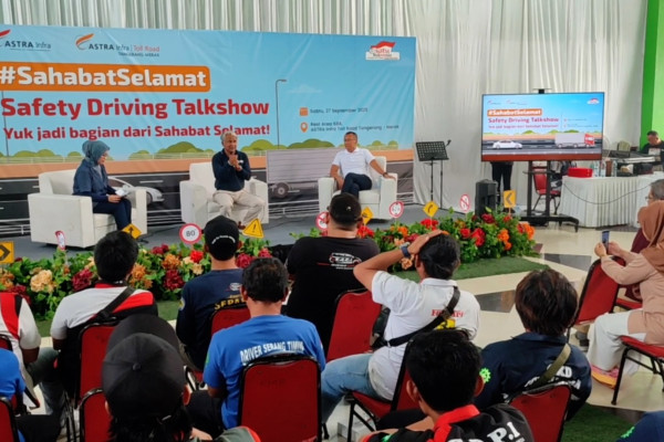 ANTARA - Guna mencegah kecelakaan lalu lintas di jalan tol, Astra Infra Toll Road Tangerang-Merak, Sabtu (27/9), melaksanakan kampanye keselamatan berkendara dengan aman (safety driving) kepada sejumlah pengemudi truk di Rest Area KM 68A, Tol Tangerang-Merak, Bogeg, Kota Serang, Banten. Komite Nasional Keselamatan Transportasi (KNKT) menyebutkan dalam tiga tahun terakhir, dari penyelidikan kasus kecelakaan di jalan tol, pecan ban menjadi penyebab terbanyak kecelakaan. (Susmiatun Hayati/Chairul Fajri/Roy Rosa Bachtiar)