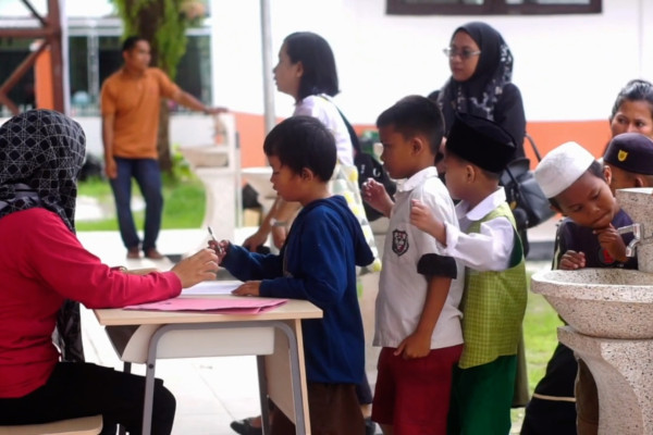 ANTARA - Sebanyak 75 siswa dari kelas 3 hingga kelas 5 pada sekolah rakyat pertama di Palangka Raya terlihat ceria memasuki asrama sekolah rakyat berlokasi di jalan Iskandar Kamis (2/10). Sebanyak empat ruangan asrama putra dan putri lengkap dengan tempat tidur, meja belajar, kursi dan lemari menjadi keseharian para siswa yang sedang menjalani masa pengenalan lingkungan sekolah (MPLS). (Redianto Tumon Sp/Yovita Amalia/Nanien Yuniar)