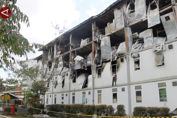 ANTARA - Otorita Ibu Kota Nusantara (IKN) memastikan seluruh pekerja selamat dalam peristiwa kebakaran Hunian Pekerja Konstruksi (HPK). Polisi terus melakukan investigasi penyebab kebakaran yang menghanguskan salah satu unit hunian pekerja IKN tersebut. (Hanifan Ma'ruf/Sandy Arizona/Gracia Simanjuntak)