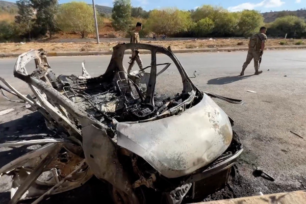 ANTARA - Dua anggota Hizbullah tewas dan satu warga sipil terluka akibat serangan udara Israel di Lebanon Selatan. Israel menyerang dengan pesawat nirawak yang menimpa sebuah mobil di jalan Jarmaq/Khordali dekat kota Nabatieh. (XINHUA/Nanien Yuniar/Yovita Amalia/Rijalul Vikry)