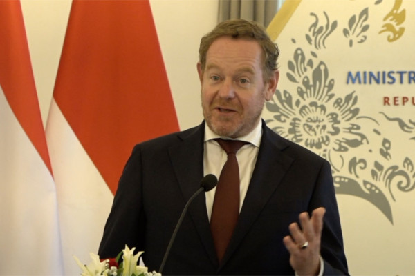 ANTARA - Menteri Luar Negeri Belanda, David van Weel, di Jakarta pada Kamis (9/10), menyampaikan permintaan maaf atas kekalahan Indonesia saat dilatih Patrick Kluivert melawan Arab Saudi. Meski demikian, ia mengaku bangga karena legenda sepak bola dari negaranya itu dapat berkontribusi dalam memajukan sepak bola Indonesia. (Putri Hanifa/Soni Namura/Rijalul Vikry)
