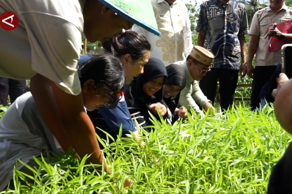 ANTARA - Wakil Menteri Pemberdayaan Perempuan dan Perlindungan Anak (PPPA) Veronica Tan mengharap sayur mayur dari kebun yang dikelola Sekolah Kampung Kawan Alam di Desa Dutohe, Kabupaten Bone Bolango, Gorontalo, dapat menjadi bahan makanan program Makan Bergizi Gratis. Sekolah Kampung Kawan Alam tersebut menghasilkan sayuran sehat dan bergizi seperti terung, mentimun, kangkung, tomat, dan cabai. (Adiwinata Solihin/Arif Prada/Gracia Simanjuntak)