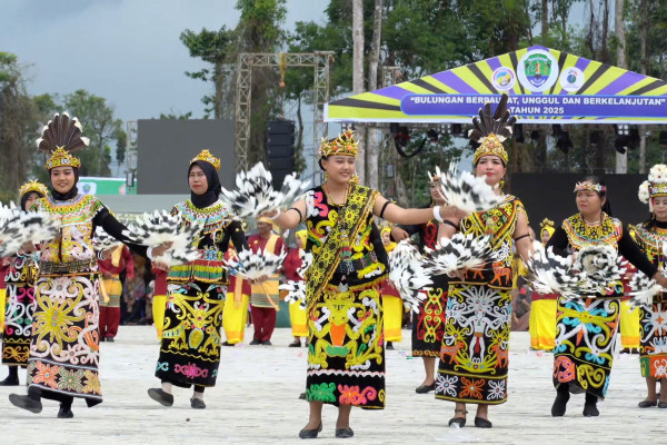 ANTARA - Dalam upacara peringatan hari ulang tahun ke-235 Kota Tanjung Selor dan ke-65 Kabupaten Bulungan, Pemerintah Kabupaten Bulungan menggelar pameran UMKM dan produk unggulan desa, di Hutan Kota Bundahayati, Kabupaten Bulungan, Kalimantan Utara, Senin (13/10). Bupati Bulungan, Syarwani, menjelaskan, pameran yang menghadirkan 150 UMKM dan 75 desa ini merupakan panggung bagi masyarakat desa untuk berkreasi dan memperkenalkan budaya khas yang diharapkan dapat meningkatkan perekonomian masyarakat. (Cica Andriyani/Yovita Amalia/Rijalul Vikry)