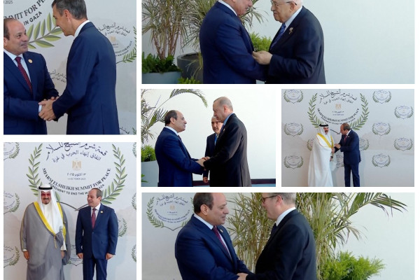 ANTARA - Presiden Mesir Abdel Fattah al-Sisi pada Senin (13/10) menyambut kedatangan Presiden Palestina Mahmoud Abbas di Sharm El-Sheikh yang akan menjadi tuan rumah KTT Perdamaian Gaza. Presiden Sisi juga menyambut pemimpin dunia lainnya, termasuk Perdana Menteri Inggris Keir Starmer dan Sekretaris Jenderal PBB Antonio Guterres. (REUTERS/Ria Gracia Carolina Simanjunta/Rizky Bagus Dhermawan/Rinto A Navis)