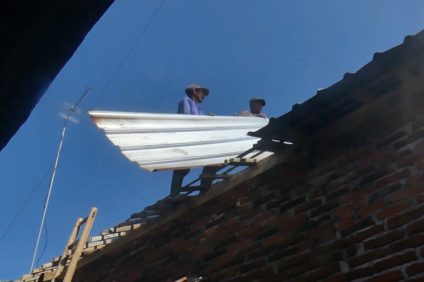 ANTARA - Sebanyak 39 rumah milik warga di Kabupaten Temanggung, Jawa Tengah rusak diterjang angin kencang pada Senin petang (13/10). Tidak ada korban jiwa dalam kejadian tersebut, namun delapan kepala keluarga harus mengungsi ke tempat saudaranya karena atap rumah rusak disapu angin. (Firman Eko Handy/Denno Ramdha Asmara/Roy Rosa Bachtiar)