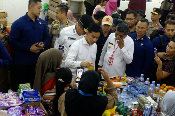 ANTARA - Wakil Presiden Gibran Rakabuming Raka melakukan kunjungan kerja di Kota Ambon, Maluku, Selasa (14/10). Wapres meninjau pasar Mardika dan memberikan arahan soal memutus rantai pasok pangan agar bisa menurunkan harga bahan pokok. (Alfian Sanusi/Yovita Amalia/Suwanti)