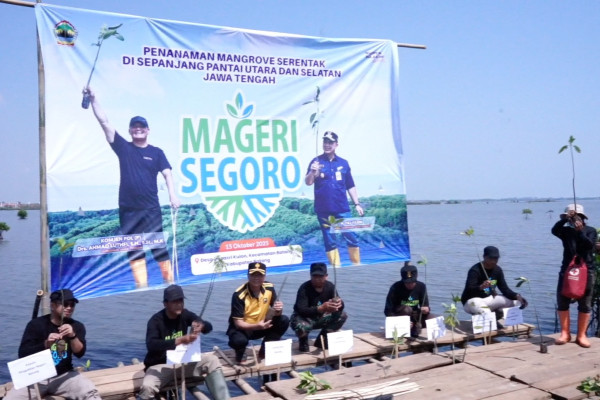 ANTARA - Dalam upaya menekan laju abrasi dan melindungi lahan pertanian pesisir, Pemerintah Provinsi Jawa Tengah menggelar gerakan Mageri Segoro secara serentak. Di Kabupaten Batang, sebanyak 57 ribu bibit mangrove ditanam di lahan pesisir yang kini telah tergenang rob, sebagai bagian dari aksi besar penanaman 1,6 juta pohon mangrove di sepanjang pantai utara dan selatan Jawa Tengah.