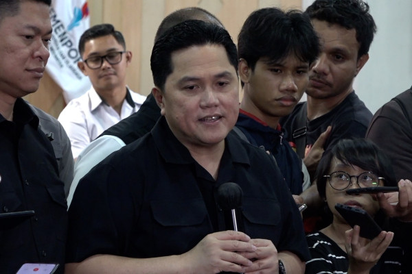 ANTARA - Ketua Umum PSSI yang juga merupakan Menteri Pemuda dan Olahraga Erik Thohir meminta waktu dua hari untuk memberikan keterangan lebih lanjut terkait pemecatan pelatih Patrick Kluivert dan tim asal Belanda. Hal itu dikatakannya saat dijumpai di acara Kemenpora di Jakarta, Kamis (16/10). (Aria Cindyara/Ibnu Zaki/Chairul Fajri/Roy Rosa Bachtiar)