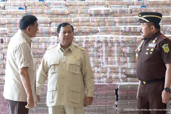 ANTARA - Presiden Prabowo Subianto menyaksikan penyerahan uang pengganti kerugian negara yang mencapai lebih dari Rp13,2 triliun di Kompleks Kejaksaan Agung Jakarta, Senin (20/10). Presiden mengapresiasi upaya penegak hukum dalam menindak korupsi dan menyebut uang itu dapat digunakan untuk kesejahteraan masyarakat. (Aria Cindyara/Suci Nurhaliza/Chairul Fajri/Gracia Simanjuntak)