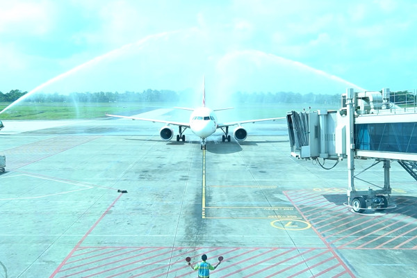 ANTARA - Bandara Internasional Syamsudin Noor Banjarmasin resmi melayani rute penerbangan internasional Banjarmasin – Kuala Lumpur. Kehadiran rute penerbangan langsung ke luar negeri itu diharapkan dapat meningkatkan kunjungan wisata serta investasi, sehingga dapat berdampak positif terhadap perekonomian Kalimantan Selatan. (Latif Thohir/Denno Ramdha Asmara/Gracia Simanjuntak)