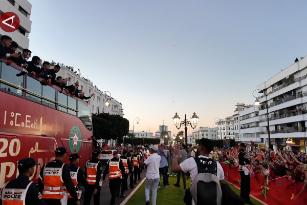 ANTARA - Warga Kota Rabat, Maroko, berbondong-bondong memenuhi jalanan untuk menyaksikan arak-arakan timnas sepak bola U20 kesayangan mereka. Sorak sorai dan lambaian tangan, mewarnai kedatangan rombongan timnas, yang pekan sebelumnya menjuarai Piala Dunia U20 usai mengalahkan tim besar Argentina pada babak final, Minggu (19/10). (XINHUA/Roy Rosa Bachtiar/Sandy Arizona/Rijalul Vikry)
