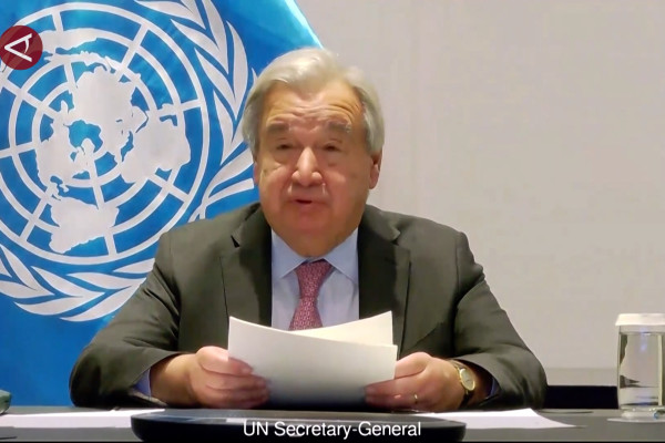 ANTARA - Sekretaris Jenderal PBB Antonio Guterres meminta Dewan Keamanan agar menyalurkan sumber daya, yang seringkali dihabiskan untuk perang, demi pembangunan dan perdamaian. Guterres menyampaikan permohonan tersebut pada Jumat (24/10) dalam debat terbuka Dewan Keamanan tentang masa depan Perserikatan Bangsa-Bangsa, yang digelar bertepatan dengan peringatan delapan dekade berdirinya badan dunia tersebut. (XINHUA/Ria Gracia Carolina Simanjunta/Denno Ramdha Asmara/Nanien Yuniar)
