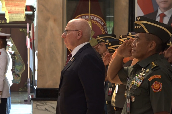 ANTARA - Menteri Pertahanan RI Sjafrie Sjamdoeddin menerima kunjungan mantan Gubernur Jenderal Australia, Jenderal (Purn) David John Hurley di kantor Kementerian Pertahanan (Kemhan) Jakarta pada Rabu (29/10). Pertemuan yang dilakukan secara tertutup tersebut, membahas terkait penguatan hubungan bilateral militer Indonesia dan Australia khususnya di bidang pertahanan. (Ryan Rahman/Rizky Bagus Dhermawan/Rijalul Vikry)