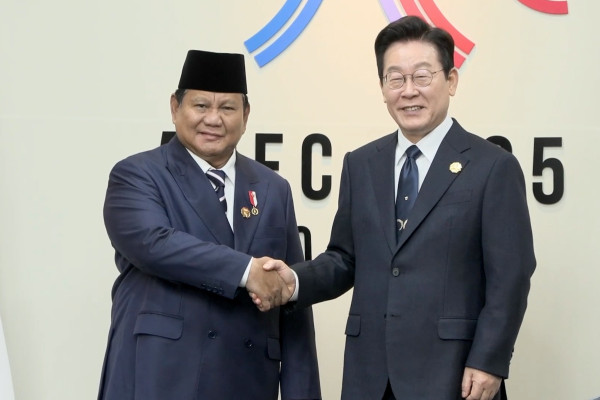 ANTARA - Presiden Prabowo Subianto melakukan pertemuan bilateral dengan Presiden Korea, Lee Jae-myung, di sela-sela KTT APEC 2025 di Gyeongju, Sabtu (1/11). Prabowo secara khusus menyampaikan apresiasi terhadap kekuatan budaya Korsel yang telah mendunia melalui K-Pop. (Yogi Rachman/Andi Bagasela/Rijalul Vikry)