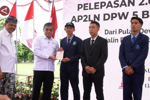 ANTARA - Menteri Ketenagakerjaan (Menaker) Yassierli menekankan pentingnya sikap santun, tangguh, adaptif, dan rajin, saat melepas 2.183 peserta magang ke Jepang di Lapangan Puputan Margarana Denpasar, Bali, Kamis (13/11). Menaker Yassierli juga menyebut tengah mengupayakan insentif bagi peserta magang di luar negeri, selama enam bulan. (Rita Laura/Sandy Arizona/Gracia Simanjuntak)