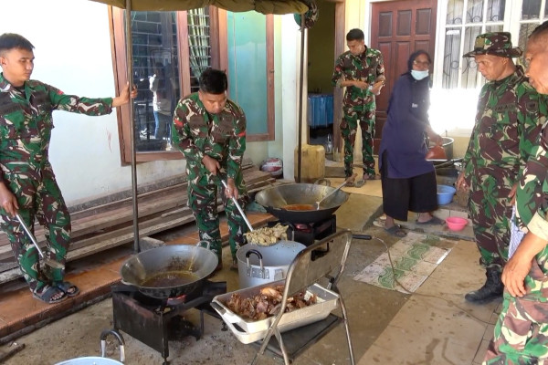 ANTARA - TNI Angkatan Darat mendirikan empat dapur umum untuk membantu korban bencana banjir bandang di Kota Padang, Sumatera Barat. Ke empat dapur umum didirikan di Lubuk Minturun, Kampus Universitas Negeri Padang Air Tawar, Gurun Laweh, dan Surau Gadang di Kecamatan Nanggalo, dengan kemampuan melayani makanan untuk 1.000 hingga 1.500 orang. (Melani Friati/Chairul Fajri/Gracia Simanjuntak)