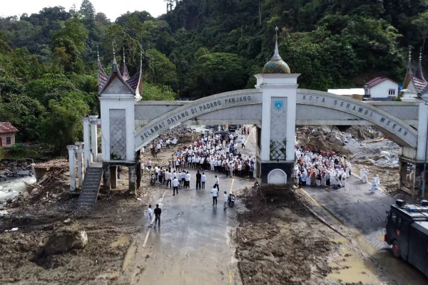 ANTARA - Ratusan warga Kota Padang Panjang, Sumatera Barat pada Jumat (5/12) memadati Kawasan Jembatan Kembar yang menjadi saksi bisu musibah banjir bandang yang melanda kota dengan julukan Serambi Mekah itu. Mereka kompak datang menggunakan pakaian berwarna putih, seraya mendoakan seluruh korban terdampak banjir dan longsor yang menimpa di tiga provinsi.