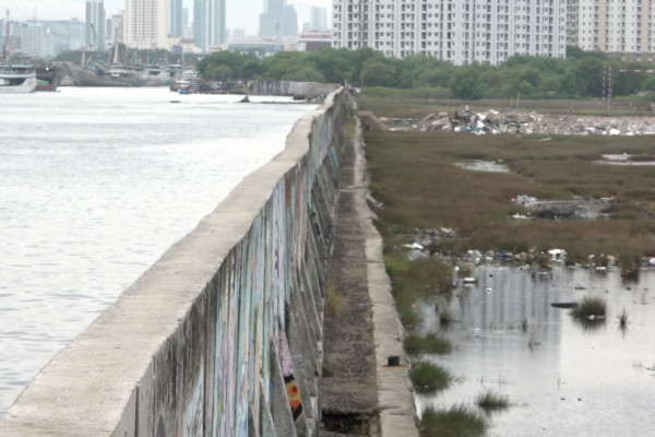 ANTARA - Gubernur DKI Jakarta, Pramono Anung meninjau tanggul laut di kawasan pesisir Muara Baru, Penjaringan, Jakarta Utara, Senin (8/12). Pramono melihat langsung kondisi tanggul laut yang sempat viral karena mengalami kebocoran beberapa hari yang lalu. (Ibnu Zaki/Denno Ramdha Asmara/Roy Rosa Bachtiar)