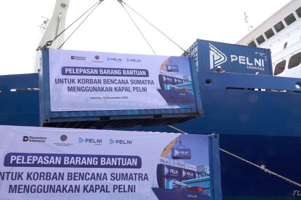 ANTARA - Direktur Utama PT Pelayaran Nasional Indonesia atau PT PELNI (Persero) Tri Andayani, melepas bantuan kemanusiaan bagi korban banjir bandang dan longsor di Sumatera, dengan menggunakan kapal Pelni. Dalam jumpa pers yang digelar di Pelabuhan Tanjung Priok, Jakarta, Jum'at (12/12), Tri menyebutkan, pihaknya akan mengirimkan 15 kontainer pada kloter pertama. (Irfan Hardiansyah/Andi Bagasela/Roy Rosa Bachtiar)