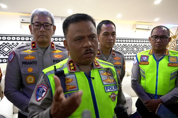 ANTARA - Kepala Korps Lalu Lintas (Kakorlantas) Polri Inspektur Jenderal Polisi Agus Suryonugroho menyerahkan sistem Smart City Bali berbasis Road Safety Policing kepada Wakapolda Bali Brigjen Pol I Komang Sandi Arsana, Rabu (17/12) di Ditlantas Polda Bali. Kakorlantas memastikan kelancaran dan ketertiban lalu lintas di Bali, selama periode Natal dan Tahun Baru melalui ruang komando yang terintegrasi dengan 236 CCTV. (Rita Laura/Andi Bagasela/Rijalul Vikry)