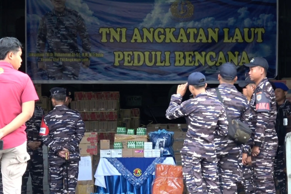 ANTARA - Komandan Daerah TNI Angkatan Laut (Dankodaeral) II Laksamana Muda TNI Sarimpunan Tanjung, menyerahkan bantuan dari Kepala Staf Angkatan Laut (KSAL) Laksamana TNI Muhammad Ali, kepada Komandan KRI Makasar 590 Letkol Laut (P) Farid di Pelabuhan Teluk Bayur, Kota Padang, Sumatera Barat, pada Minggu, (21/12). Bantuan berupa obat-obatan khusus kulit, selimut, tikar, alas tikar, handuk, pakaian dalam pria, pakaian dalam wanita, sabun mandi, sabun cuci dan kompor gas serta kebutuhan lainnya, yang diperlukan masyarakat terdampak bencana hidrometeorologi di Sibolga, Sumatera Utara. (Melani Friati/Denno Ramdha Asmara/Yogi Rachman)