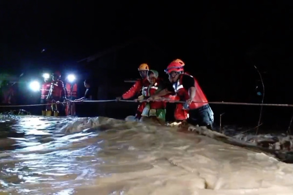 ANTARA - Hujan yang mengguyur Provinsi Sumatera Barat mengakibatkan kembali terjadinya banjir di sejumlah wilayah. Di Kabupaten Agam, Basarnas Padang bersama PMI mengevakuasi 17 warga di Sungai Asam. Sedangkan di Kota Padang, Basarnas mengevakuasi 15 warga yang terjebak banjir di Kelurahan Tabiang Banda Gadang, Kecamatan Nanggalo.(Melani Friati/Denno Ramdha Asmara/Farah Khadija)
