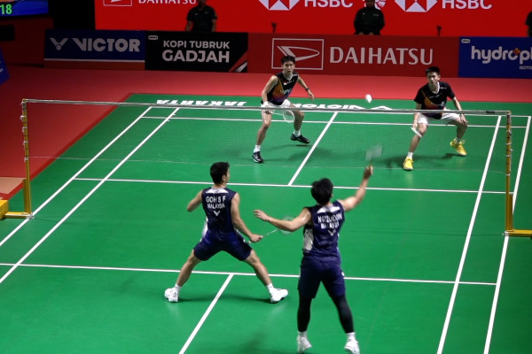 ANTARA - Ganda putra Indonesia, Raymond Indra dan Nikolaus Joaquin, gagal menjuarai turnamen Indonesia Master 2026. Raymond dan Joaquin kalah dari wakil Malaysia, Goh Sze Fei dan Nur Izzuddin Rumasani di Istora Gelora Bung Karno Senayan, Minggu (25/1). Keduanya berjanji akan lebih konsisten menjaga poin di kejuaraan selanjutnya. (Ibnu Zaki/Satrio Giri Marwanto/Farah Khadija)