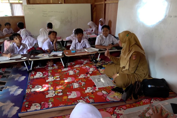ANTARA - Bencana banjir bandang dan tanah longsor yang terjadi di Kabupaten Agam, Sumatera Barat, akhir November lalu, membuat SD Negeri 14 Labuah rusak berat. Para siswa terpaksa belajar di pengungsian pada ruangan yang disiapkan sederhana dan seadanya, Namun mereka tetap ceria dengan semangat yang menyala untuk mengikuti pelajaran yang disampaikan oleh para guru. (Melani Friati/Andi Bagasela/Rinto A Navis)