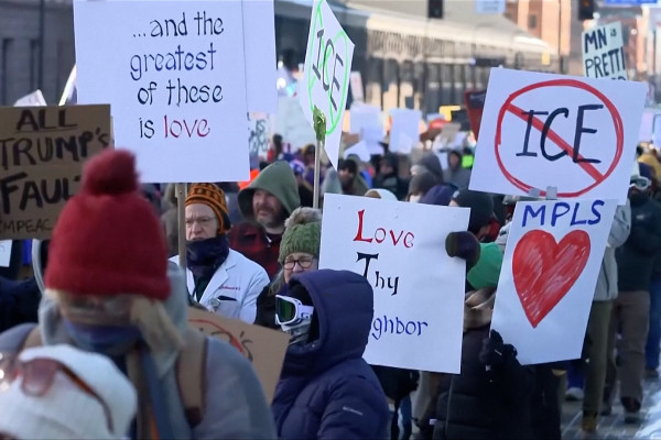 ANTARA - Minneapolis memanas usai agen Immigration and Customs Enforcement (ICE) kembali menembak mati warga AS. Saksi mata yang juga veteran militer menyebut korban bernama Alex Pretti tidak melawan. Ribuan warga mengepung Balai Kota menuntut keadilan dan menyerukan aksi mogok nasional. (Reuters/Rinto A Navis/Rayyan/Rijalul Vikry)
