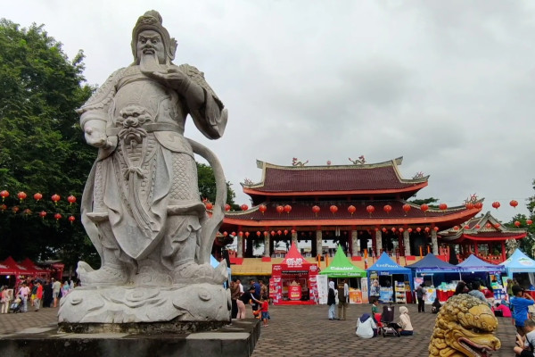 ANTARA - Wakil Presiden Republik Indonesia Gibran Rakabuming Raka meninjau persiapan perayaan Imlek di Klenteng Sam Poo Kong, Kota Semarang, Sabtu (14/02). Kepada pengurus Klenteng, Gibran berpesan agar terus menjaga tradisi dan merawat toleransi. (Fx. Suryo Wicaksono/Denno Ramdha Asmara/Rinto A Navis)