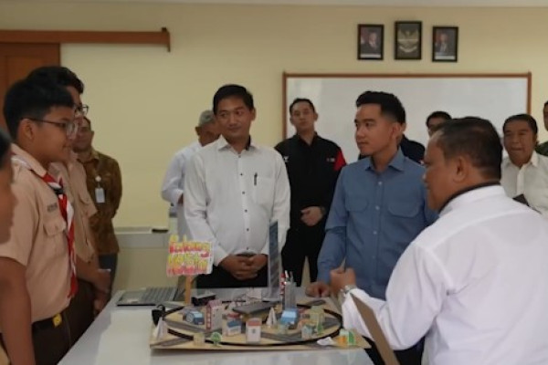 ANTARA - Wakil Presiden Republik Indonesia, Gibran Rakabuming Raka meninjau langsung pembinaan sains dan teknologi di SMP Santo Yusup Bandung, Kota Bandung, Rabu (4/3). Dalam kunjungan ini, Wapres melihat berbagai inovasi berbasis Internet of Things yang dikembangkan para siswa. (Dian Hardiana/Rizky Bagus Dhermawan/Nabila Anisya Charisty)